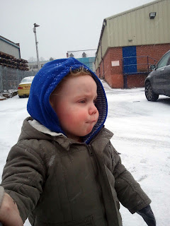 Ryan was not happy to leave, but we could see it was time to go because he was getting cranky and it was definitely time for a nap. Once we were outside, there was a nice blanket of snow on the floor -- the first proper one of the year, in fact! If it weren't so stinking cold, however, I'd bring him out in it to build his first snowman.